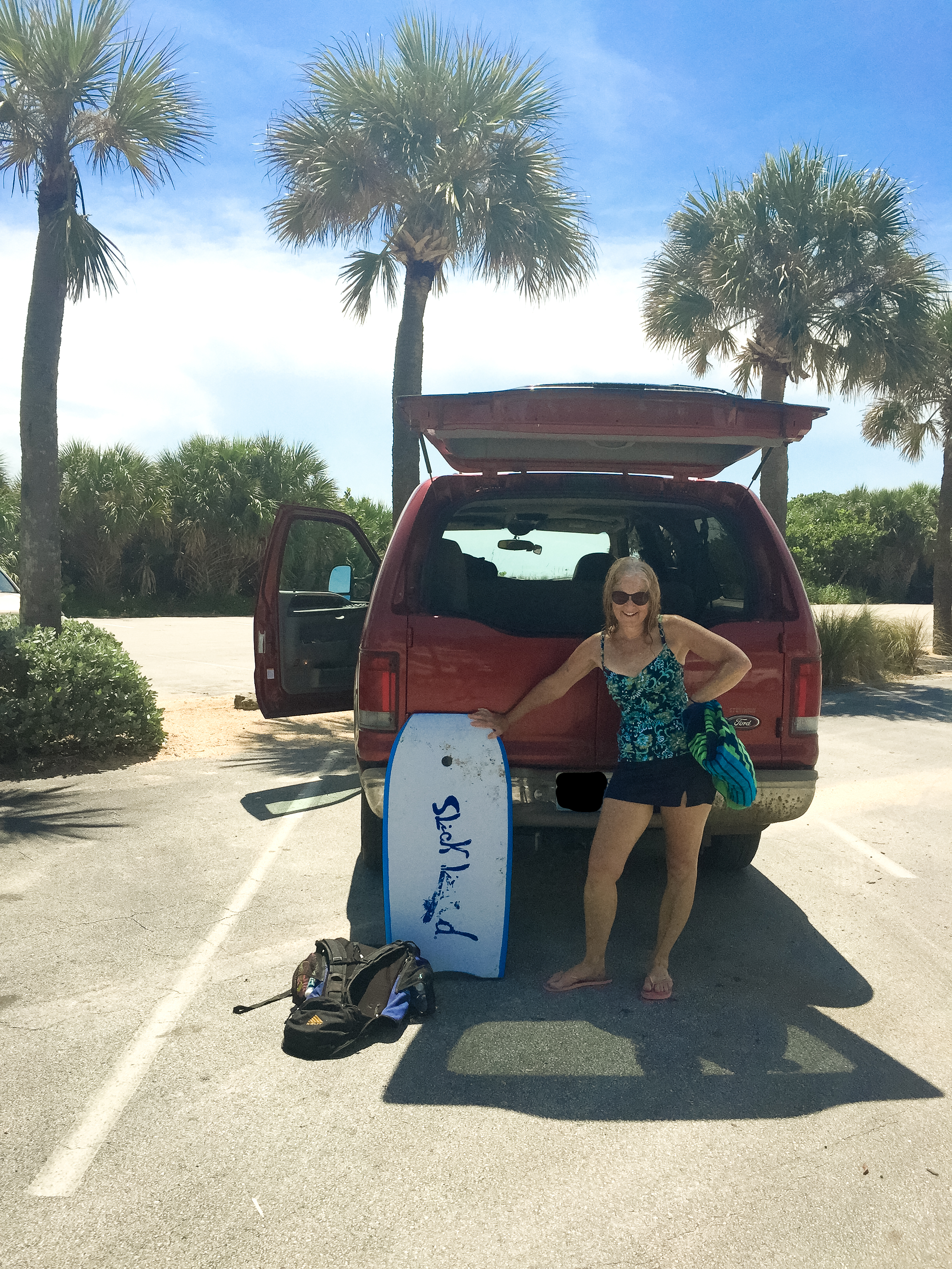 And here is my Excursion on it’s first beach trip to the Atlantic (and my mom after a glorious day of boogie boarding!):
